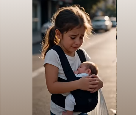 Maria’s small hands shook as she stumbled down the empty street, her newborn brother pressed to her chest like a fragile heartbeat. The trash bag in her hands was ripped and dirty, and every step felt like dragging the weight of the world.