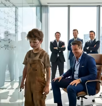 The homeless boy stood barefoot in front of the whiteboard, his torn sleeves stained with dust, his fingers trembling around the marker. Equations filled the board — long, complex, desperate.