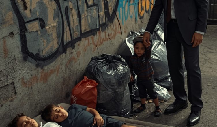 A thin boy stood barefoot near a broken bus stop. He couldn’t have been older than nine. His shirt hung loose on his small frame.
