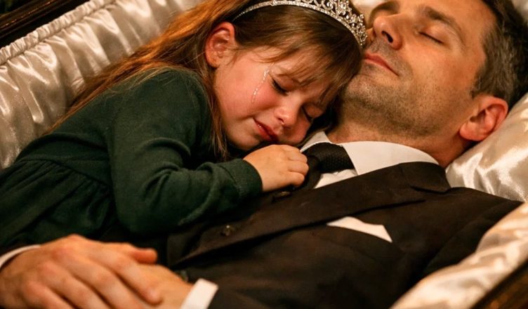 You crouch beside the coffin, and your voice shakes as you speak to your daughter like you’re negotiating with fate.