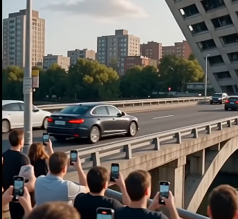 For a split second, traffic moved as usual across the Riverside Bridge. Drivers tapped their brakes, confused. On the lower platform, a small crowd had gathered near the river, filming what they thought was minor structural shifting in the adjacent building.