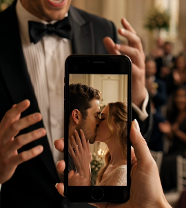 The bride had already turned the screen toward the guests.