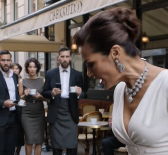 A wave of whispers spread through the café.