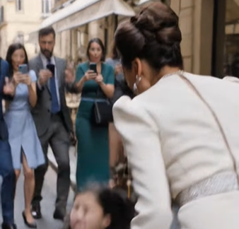 The little boy looked up, confused and crying, still clutching her torn sleeve.