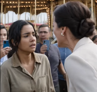Sofia slowly stood, still protecting her daughter with one arm, tears running down her face.