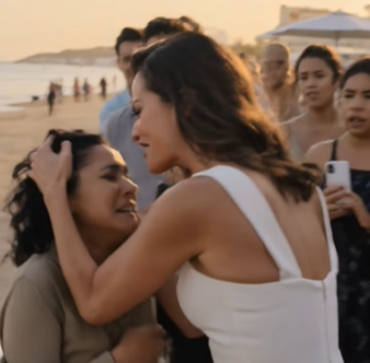 And all around them, strangers were still filming as her perfect life collapsed with the sound of the waves behind them.