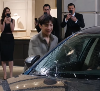 Around them, the luxury street stayed frozen in silence. Cars passed farther down the road. Boutique lights gleamed against the wet pavement. Nobody lowered their phone.