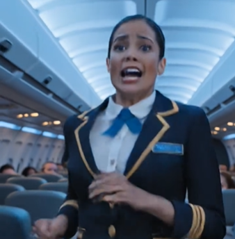 The flight attendant crouched beside him now, voice lowered, urgent and shaking.