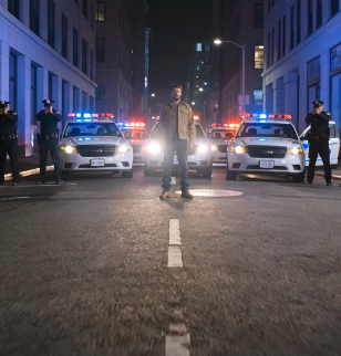 The sirens still flashed over the wet road, but the energy had changed completely.