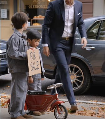 All of it suddenly alive again on a cold sidewalk beside two boys trying to sell a toy no child should ever have to give away.