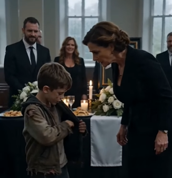 The widow stared at the card in the boy’s hands and understood that the one lie she thought would die with her husband had just walked into the room in wet shoes.