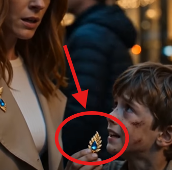 Across the street, the woman in the dark coat stood half in shadow beneath the pharmacy light, one hand resting at her side, the other touching the pin on her collar like she already knew Mara had seen it.
