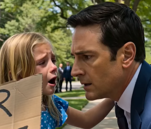 The little girl stepped behind him instinctively, one hand still clinging to his suit sleeve, the other to the pink bicycle like it was the last thing in the world that still belonged to her.