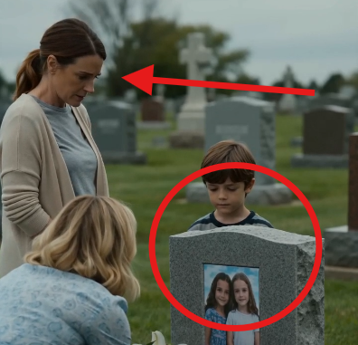 The standing mother stared at her son, then at the grave, then back at him like she wanted to tell him to stop—