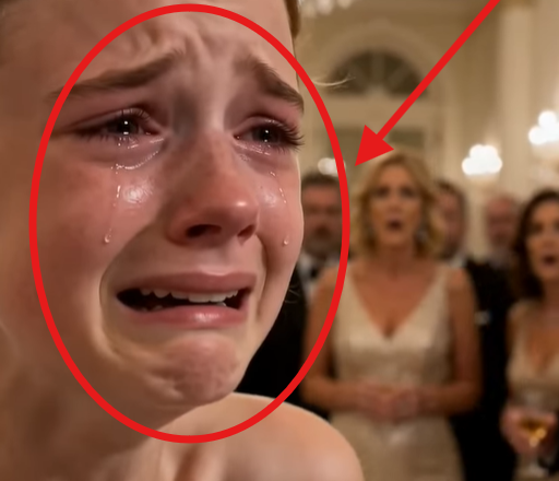 The girl clutched the broken strap of her dress, confused and trembling.