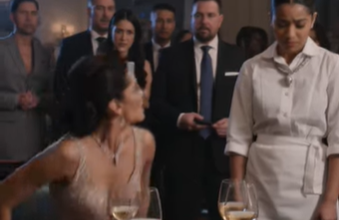 In front of a packed five-star restaurant, under crystal chandeliers and candlelight, she grabbed the elegant young waitress by the hair and screamed,